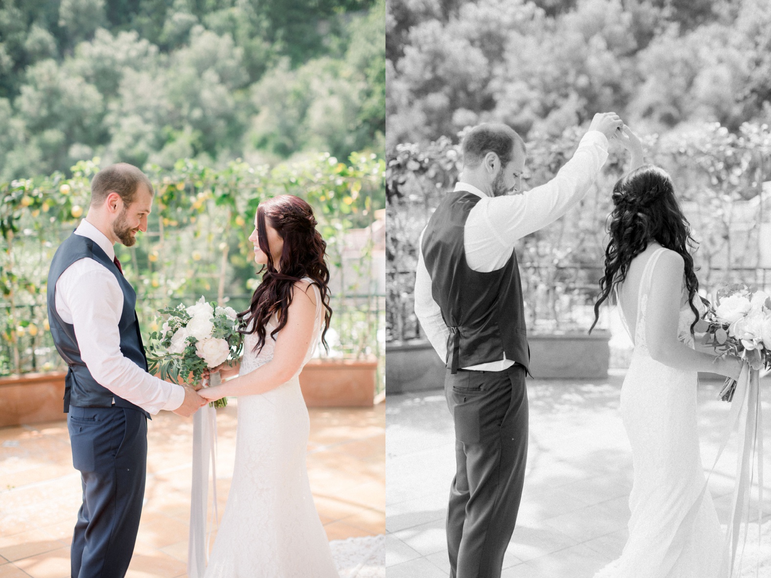 Ceremony/Reception Venue & Catering: Grand Hotel Convento di Amalfi | Wedding Planner: The Amalfi Experience | Officiant: Peppe Rosa | Bridal Dress Designer: Made with Love Bridal | Bridal Dress Shop: Bucci Bridal | Videographer: Pierfrancesco Cantarella | Stationary: Etsy (lvandy27) | Calligraphy: Bride | Acrylic Name Plates: Etsy (scriptedeverafter) | Aisle Runner: Etsy (salvageden) | Vow Books: Etsy (CustomCraftedStudio) | Bride\Groom Chair Signs: Etsy (HappilyEverEtchedInc) | Custom Chair Sticks: Etsy (SwissMissCloset) | Film Processing: The FIND Lab | Second Shooter: Cassie Bedore